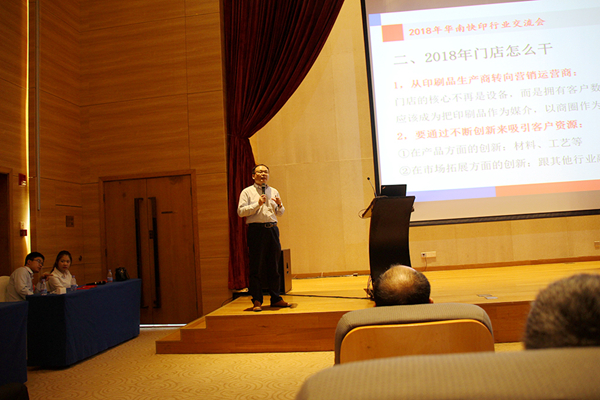 2018年3月5日,由天意有福主辦、大洋圖文、富麗圖快印聯(lián)合協(xié)辦的主題為“華南快印2018怎么搞交流會”在廣州市黃埔區(qū)保利假日酒店報告廳隆重舉行。天意有福副總經(jīng)理董祖明、王亦兵、吳楊文,富麗圖快印總經(jīng)理束永春,柯尼卡美能達(dá)梁曉麟,大洋圖文總經(jīng)理陳育明,悟空快印劉敏,六九快印曾中輝,點(diǎn)源科技總經(jīng)理何根山等13位嘉賓出席了此次會議。下午13點(diǎn)30分,柯尼卡美能達(dá)梁曉麟先生致辭,宣布會議開始,近兩百家快印企業(yè)代表針對行業(yè)趨勢、互聯(lián)網(wǎng)技術(shù)應(yīng)用以及未來發(fā)展方向等話題,結(jié)合本公司經(jīng)營策略展開了精彩的行業(yè)對話。
